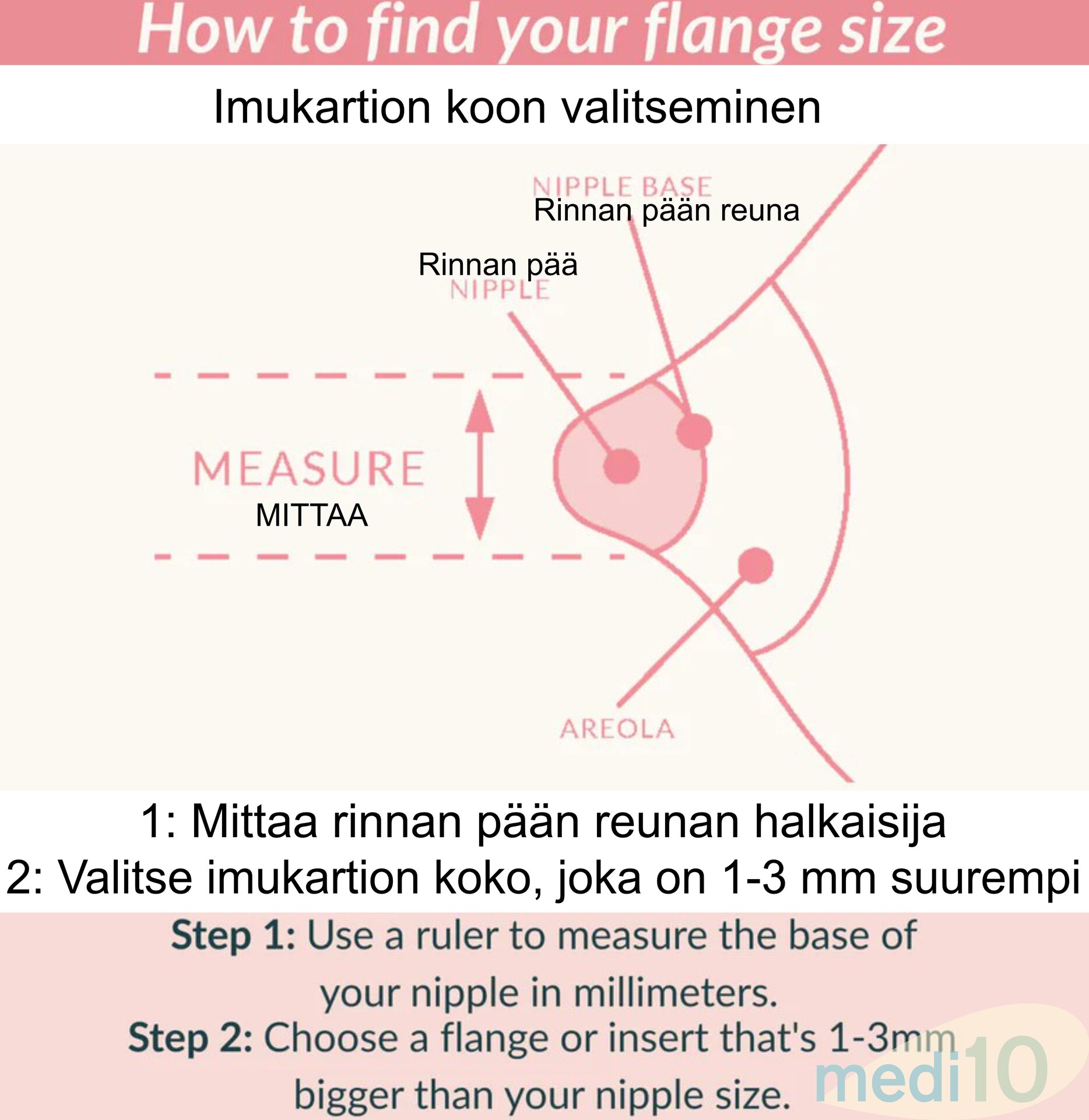 Tuote sopii Amedan 25mm Hygiene ja Steriileihin pullosarjoihin sekä Ameda Glo rintapumppuun.